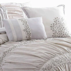 Cheap ๐ Benzara Rue 8 Piece King Size Comforter Set, Microfiber, Pleated Design, Beige ๐