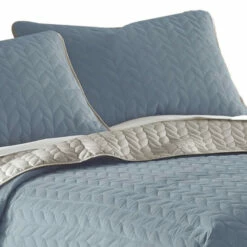 Cheap ๐ Benzara Eva 3 Piece Queen Microfiber Reversible Coverlet Set, Quilted, Gray, Blue โค๏ธ