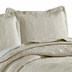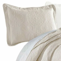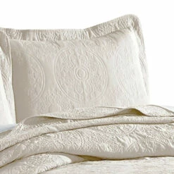 Best Pirce ๐ฅฐ Benzara Ada 3 Piece Microfiber King Size Quilt Set, Mandala Embroidery, Ivory ๐
