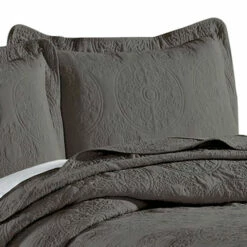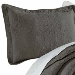 Budget ๐ Benzara Ada 2 Piece Microfiber Twin Size Quilt Set, Mandala Embroidery, Dark Gray โญ