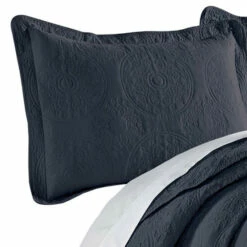 Best deal ๐ Benzara Ada 3 Piece Microfiber Full Size Quilt Set, Mandala Embroidery, Indigo ๐