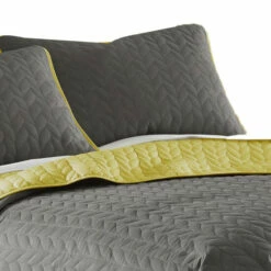 Cheapest ๐ Benzara Eva 3 Piece King Microfiber Reversible Coverlet Set, Quilted, Gray, Black โจ