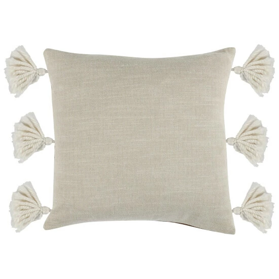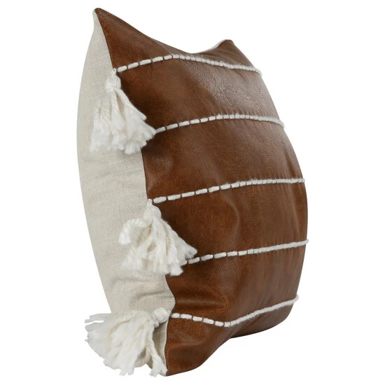 This beautifully designed accent throw pillow is made to enhance the look of your living room decor with a classic yet coastal charm. Square in shape, it is adorned with a hand embroidered striped pattern over a soft vegan faux leather cover and embellished with tassels for a contrasting look. It has a hidden zipper opening with a feather down filled insert that makes it incredibly comfy.