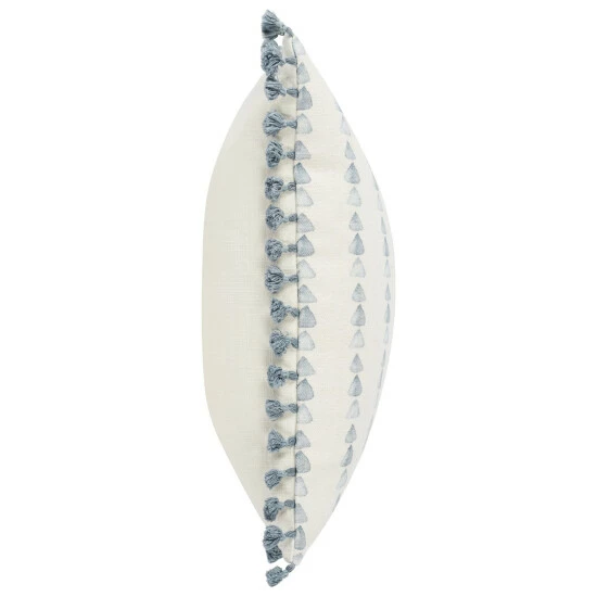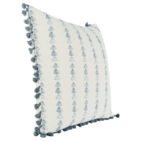 Made with a striking sense of both the contemporary and the casual, this accent throw features shala blue watercolor patterns that contrasts beautifully against a warm ivory coloration. Filled with duck feathers and down for supreme comfort, this pillow features tassels that line the edges to give the piece a sense of both playfulness and exquisite luxury.
