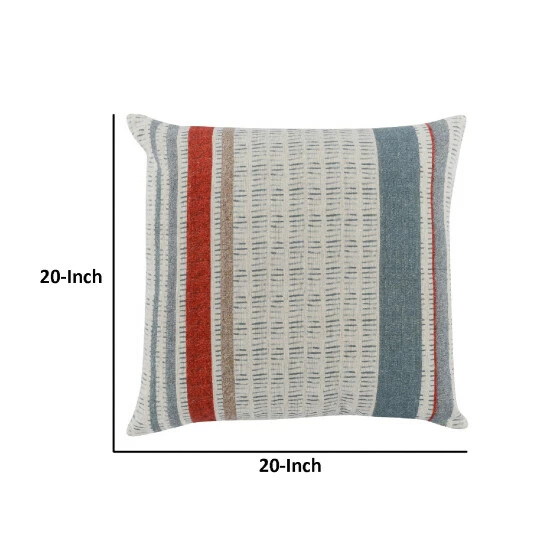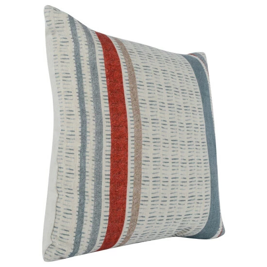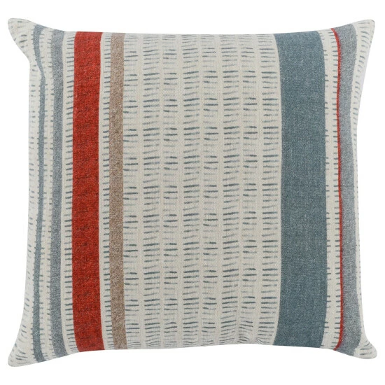 Easily renew and refresh your home decor with this soft, plush accent throw pillow in coastal transitional style. Square in shape, it features a removable Belgian flax linen cover with digital printed gray, red, and blue broken stripes. It comes with down feather pillow insert for extra padding and coziness upon any living room sofa, chair, or guest bed.