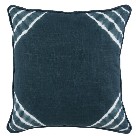 Designed with sophistication and care, this accent throw pillow features a soft cotton cover in a deep blue hue that contrasts beautifully against a crisp white hand dyed corner design. Filled with duck feathers and down for an incredible sense of comfort and luxury, this is a perfectly transitional piece for adding life to any living room or bedroom, whether traditional or contemporary in style.