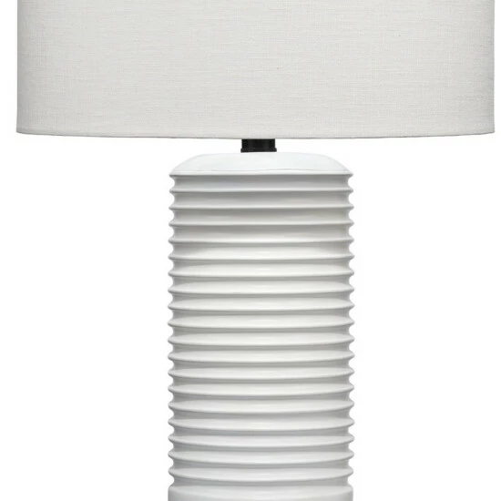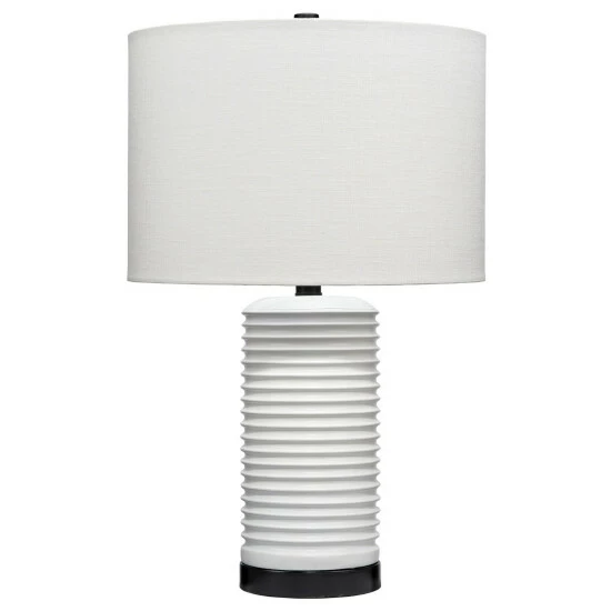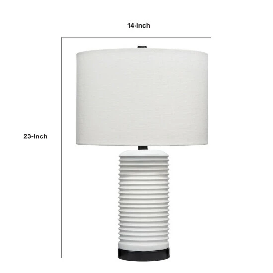 Bring a sense of class, charm, and contemporary cool to your home office or end table with this gorgeous resin table lamp. With a crisp white linen drum shade for filtering light softly through your home, it also includes a ribbed resin base that is eye catching, yet simple, while its black iron base gives it a striking sense of contrast, making it an ideal accent piece for any room in your house.