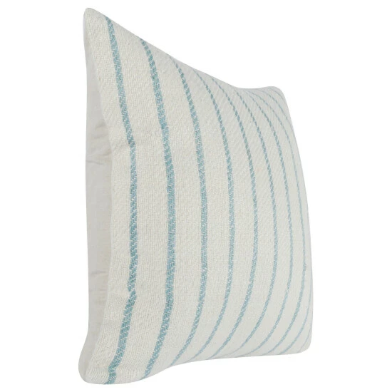 Exquisitely crafted and delightfully designed, this accent throw pillow is made from smooth, comfy linen and generously stuffed with soft feathers and down. Its strikingly clean edges feature stunning embroidery and the piece is completed with distinctive thin blue striped patterns for a look that stands out with understated, homespun charm.