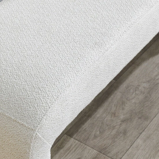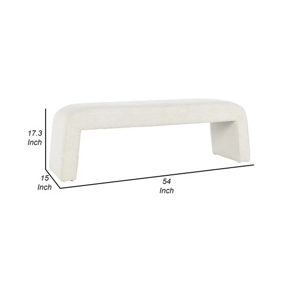 Bring convenient yet elegant seating to your foyer, hallway, or bedroom with this gorgeously designed accent bench. Entirely upholstered in cream colored, soft polyester fabric, this piece features plush foam padding over a stylish rectangular seat, and its clean simplistic design adds comfort and contemporary class to any interior setting.