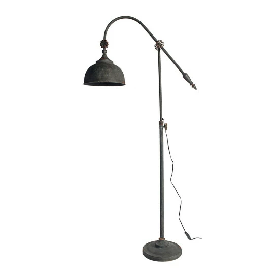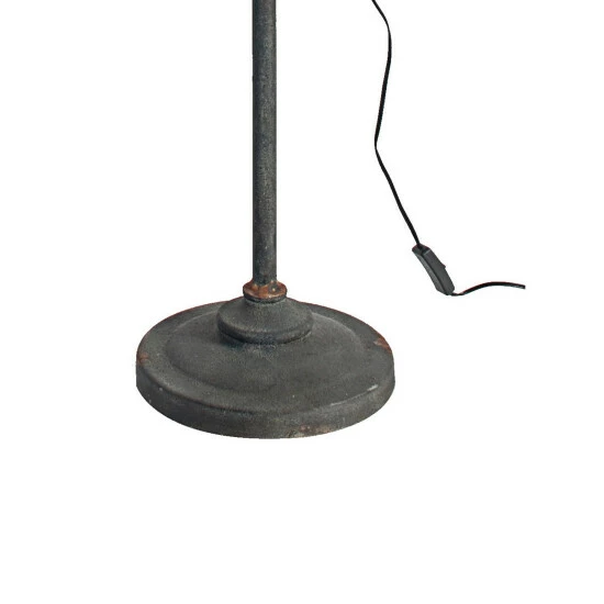 Industrial in style, our specially crafted rustic floor lamp makes a gorgeous fit for your living room, den, or foyer. It features a retro style shade and is crafted from a sturdy iron frame in an antique black finish. With a sleek frame, it rests on a round stable base. Perfect for rustic, transitional, cottage, or modern style interior decor.