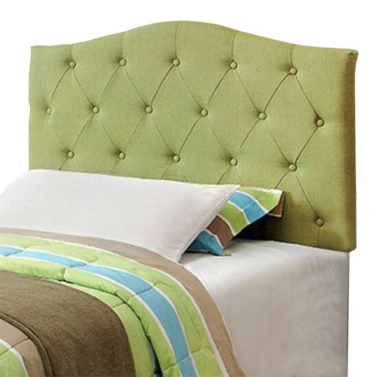 A simple camelback shape brings out the elegance of these button tufted headboards. Each one is padded and upholstered in linen-like fabric, available in soft green color and twin size. Perfect for contemporary or coastal sleeping spaces, these headboards bring a light and airy feel to any room. Its sleek design will adorn the beauty of your bed while reflecting the same to your interiors as well. this stylish headboard adds a touch of sophistication.