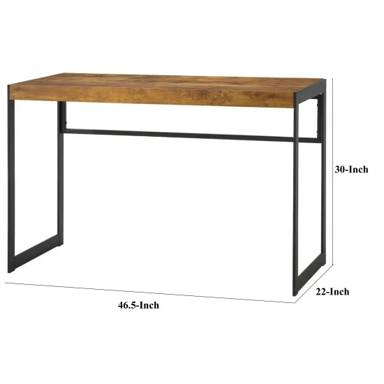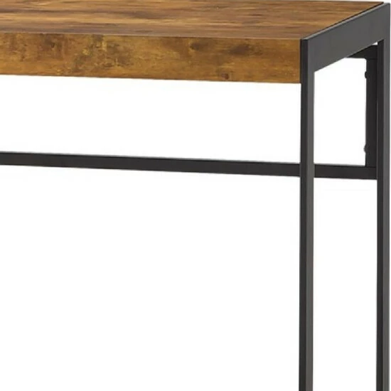 Featuring simple lines and a mix of metal and wood materials, this Atelier Computer Writing Desk has a modern industrial look. A simple metal frame in a Gunmetal finish gives the desk a lightweight and airy feel, while the Antique Nutmeg finished wood top brings rustic appeal to the piece. With a space saving design, this small desk was built to fit easily into a bedroom corner or against the back wall of a living room or study.