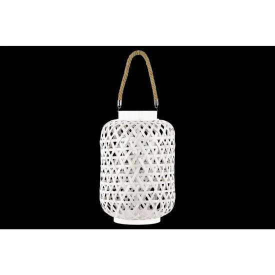 Flawlessly beautiful and intriguing, this lantern will create a really graceful ambiance when illuminated while styling your interior with its delightful flair. The bamboo crafted white lantern features a round shape which is highlighted with triangle cutout designs along with a hemp rope handle for carrying.