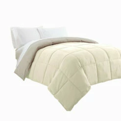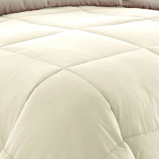 Featuring a clean lined, simplistic vibe as well as beige and ivory coloration, this reversible queen comforter is a perfect way to warm up not only your winter nights, but your bedroom decor as well. It is crafted from ultra soft microfiber with engineered down alternative polyfill fiber for all night comfort and relaxation. Check out our Beth collection for more size and color options.
