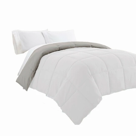 Crafted with a distinct sense of sophistication as well as crisp white and gray coloration, this reversible queen size comforter makes for a deeply cozy bedroom accent, ideal for cold nights and calm mornings. It is crafted from ultra soft microfiber with engineered down alternative polyfill fiber for all night comfort and relaxation. Check out our Beth collection for more size and color options.