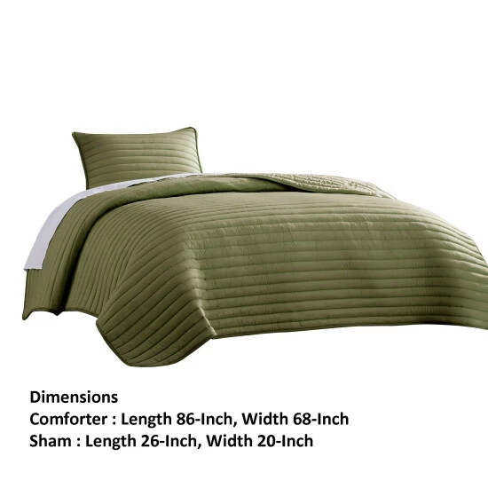 Superbly comfortable and surprisingly lightweight, this two piece twin size comforter set in green finish is perfect for cuddly evenings. The subtle yet aesthetically pleasing channel quilted front is made and filled with high quality polyester fabric for enhanced softness, making it a perfect fit in your kids bedroom, dorm, or guest room. Check out our Cabe collection for more options.