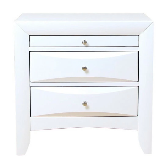 The Ireland nightstand features two spacious storage drawers and one pull-out tray, With English dovetail with center metal glides. The tray will keep essentials close by and pull out tray offers you additional surface area. Complemented by slightly flared square legs, the collection features contemporary feel and . A modern white finish with shaped drawer fronts. Uplift the beauty of your decor where it will be placed.