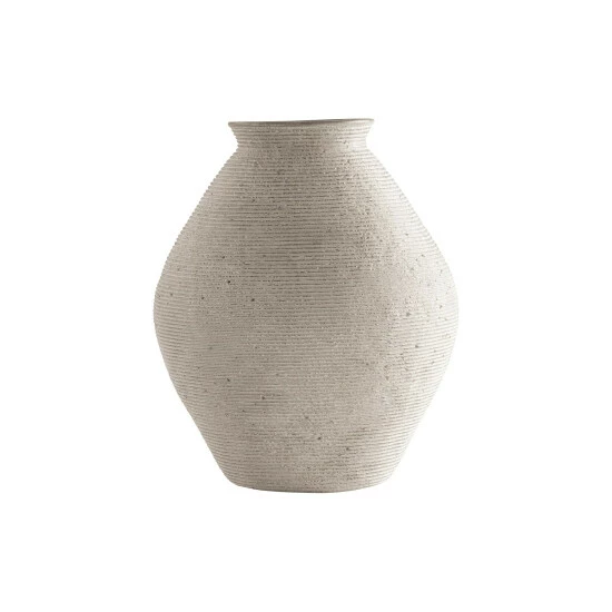 With a bright seaside artisanal appeal and subtly ribbed texture, this 12 inch vase is perfect to place on your tabletop or kitchen counter. Crafted from polyresin in an antique beige finish, this vase depicts a round mouth and an intriguing, unique silhouette, perfectly complementing a wide variety of decor styles from classic to contemporary. Check out our Dale collection for more options.
