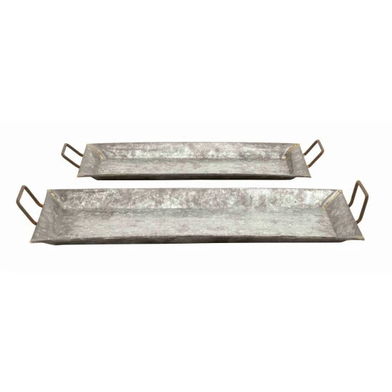 Attractively designed, this set of metal galvanized trays areperfect for ushering old world elegance to interiors. Lavished witha distressed finish and hammered texture, this tray set exemplifiesfinesse and elegance and lends a rustic, country-style charm tointeriors.