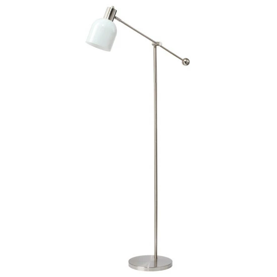 Infused with a hint of both the traditional and the cutting edge, this gorgeously designed floor lamp is durable, functional, and stylish all at once. The hand blown crisp white glass shade is complimented with a hand painted nickel finished metal, giving the home surrounding it a perfect ambience for late night gatherings or an evening with a book. Check out our Draft collection for options.