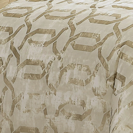 Apply a touch of elegant, silky comfort to your bedroom with this 10 piece queen size comforter set, made with smooth polyester fabric for a calm, relaxed atmosphere all night long. The subtle lattice patterning, embroidered and quilted designs, and eye catching neutral cream and gold tonation can turn any bed into an effervescent bedroom centerpiece. Check out our Elia collection for more sizes.