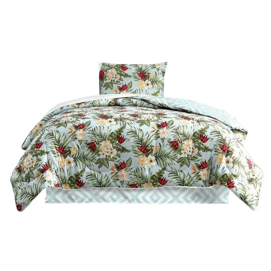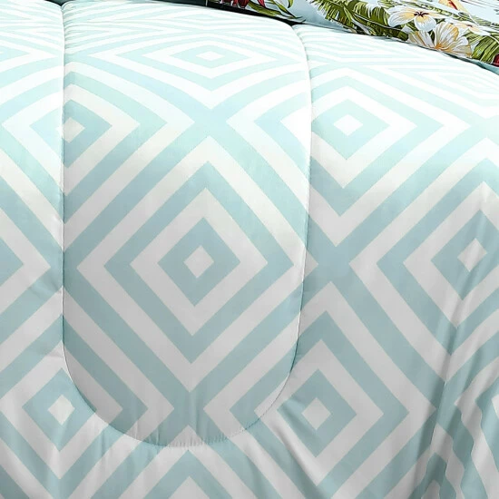 Bring the breezy, tropical aesthetic of coastal life to your master, kids, or guest bedroom with this twin size six piece multicolor comforter set, made from soft polyester fabric and pattered with a gorgeous floral design print on its front for any season, with a coordinating geometric design on its back to add a twist of modernity. Check out our Elia collection for matching items.