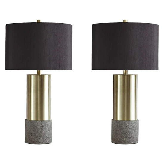 Illuminate your decor setting with the addition of this contemporary style inspired Table Lamp which comes with a round drum shade. Crafted from metal frame with faux concrete base, it is sure to add an enchanting vibe to the aesthetics of your interior.