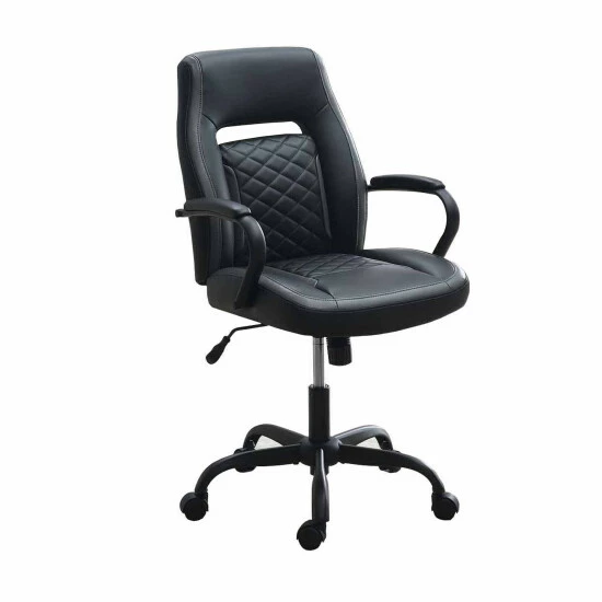 This modern ergonomic office chair makes a perfect fit for your home office or workspace. With a padded seat and diamond tufted details, the breathable backrest has lumbar support for your back and neck, allowing you to work long hours comfortably. Upholstered in vegan faux leather in black, it is supported on a five star caster wheel base. Check out our Ida collection for more options.