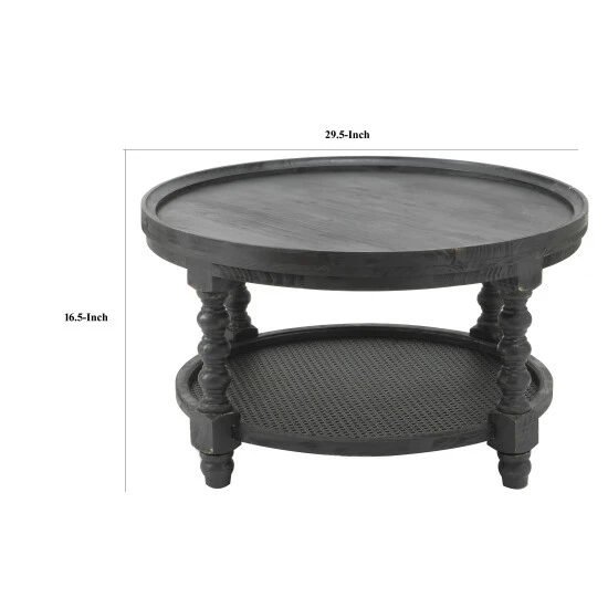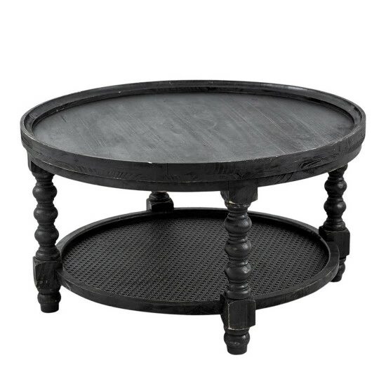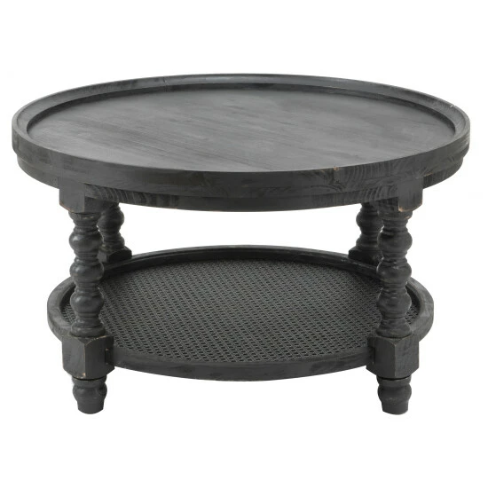 Traditionally stylish and expertly built, this coffee table makes a perfect fit for the living room or lounge. With a raised edge on the round tabletop and a woven wicker bottom, it is made from fir wood and composite wood in black finish. Essential for showcasing decorations, vases, and more, this piece is a stunning addition to any interior design. Check out our Jake collection for more options.