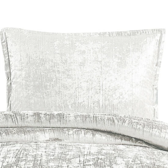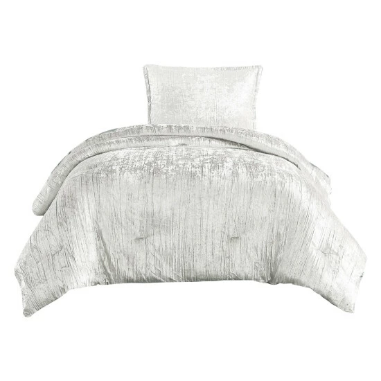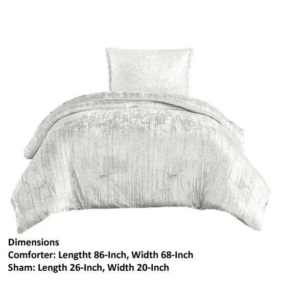 With a brilliant, luxurious style, this two piece twin size comforter set makes a great fit for your kids room, dorm, or guest bedroom. The white polyester velvet fabric has brushed backing, and the polyfill inserts add enhanced warmth and coziness to your bed while the crinkle textures give the top a unique, sleek feel. Check out our Jay collection for more options in size and color.