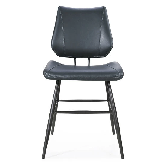 Keep with the modern style you’ve created in your dining room with this set of two side chairs. Durable metal forms strong legs and framework for the back and seat, ensuring these chairs remain rigid and lasting. Separate padded seats and backs with raised sides form a comfortable place to sit, and the backs feature contoured curving to support guests. Stitched detailing dresses up the durable black faux leather upholstery, and the armless design maintains a sleek profile and makes these chairs easy to tuck under your table.