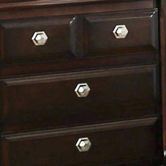 With Smooth Carved Panels, This Night Stand Will Add A Chic Upgrade To Your Bedroom Decor. A Dark Bold Finish Sets Off The Stylish Design Of The Contrasting Metal Drawer Pull Handles. Felt-Lined Top Drawers Provide Safe Haven For More Delicate Possessions, Hidden Behind The Bold Paneling Designs Of Each Drawer Front.