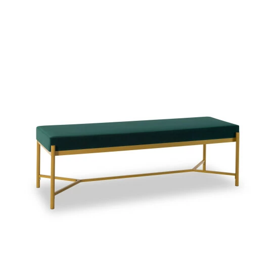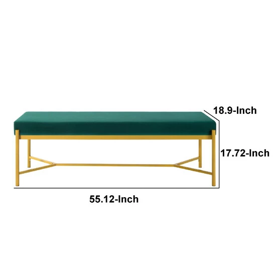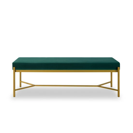 Inspired by minimalist, modern design, this rectangular bench with a soft green velvet upholstered seat cushion is great as an extra sitting spot in your living room, foyer, or entryway to flaunt a subtle yet luxurious taste. This spacious bench gives any interior space a luxurious, regal touch with a contemporary, simplistic style. Check out our Lola collection for more color options.