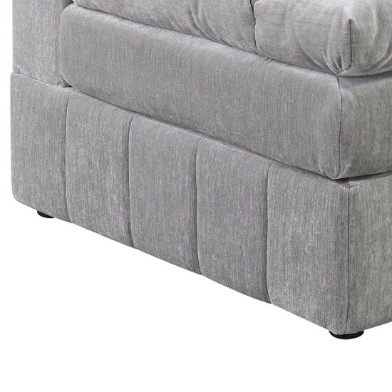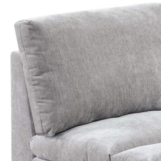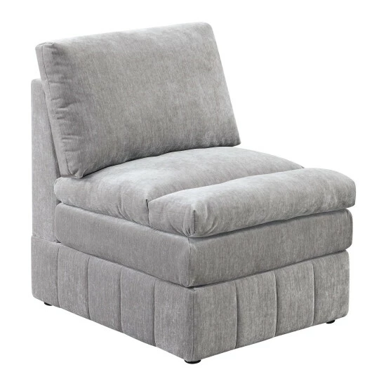 More than a living room accessory, this light gray armless central chair adds charm to any interior decor ensemble. Made from solid wood and composite wood in a smooth suede like fabric upholstery with three layers of plush cushioning for true comfort. Combine this modular chair with other matching pieces from our Luna collection to make a customizable sofa, loveseat, or standalone piece.
