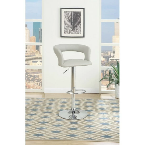 Bar stools are meant to be a part of modern interior style, if you are a bar owner then add this barstools to the stylish interior of your bar. You can also adorn this in your living room bar corner. This adjustable swivel barstools comes adorned in gray faux leather with a silver pole frame and round base. Some Assembly Will Be Required.Comprises Set of 2 bar stoolsBar Stool: 20″ x 18″ x 31″H – 38″HMaterial: Grey PVC Faux Leather MDF