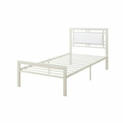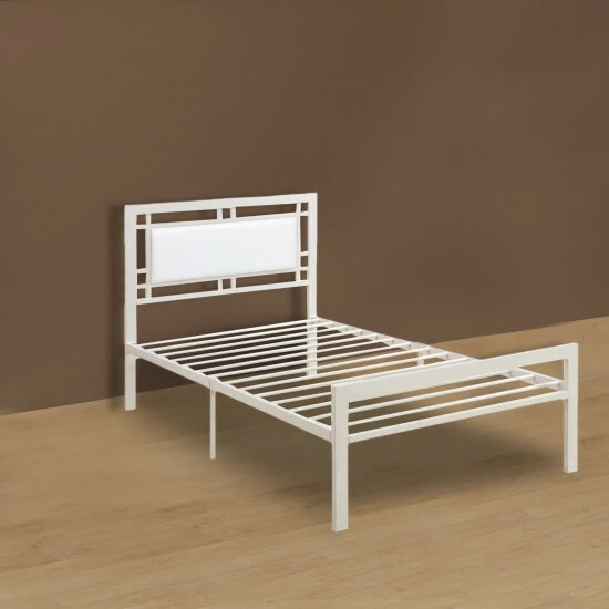 A sleek and clean bedroom furniture to adorn in a bedroom, this Twin size bed is one such piece. A beautiful addition to your home, this bedroom set features a white faux leather headboard and bedframe draped in clean lines. Being made up of metal this will remain in same pristine condition for long.Does not include any featured product other than this bed.We focus on providing top quality, and value to our customers with our vast selection of product categories which include decorative accessories, accent furniture, mirrors, wall décor, lighting and garden. We are committed to maintain high standards of quality and production.Disclaimer: We ensure that the product delivered to you is unused. There can be very minimal changes from the image provided (color may vary).