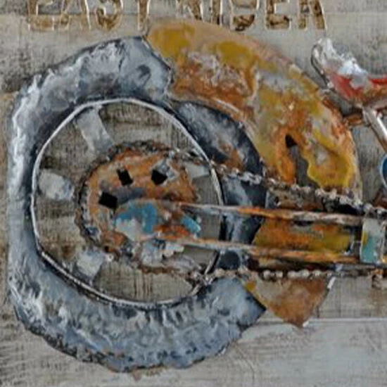 This metal motor bike Β Β art C212-123035 features unique design of motor bike on wooden base to hang Β Β on wall. Prepared by waste materials to promote 100% recycle use to benefit Β Β our environment. Β Β Β