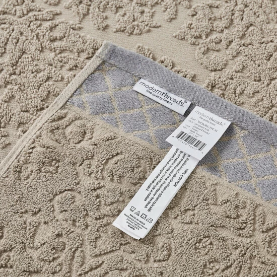 - Set consists of two bath towels, two hand towels, and two wash towels