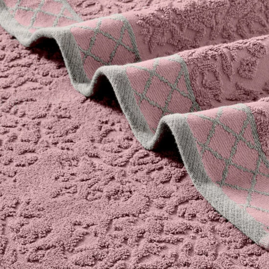 - Set consists of two bath towels, two hand towels, and two wash towels