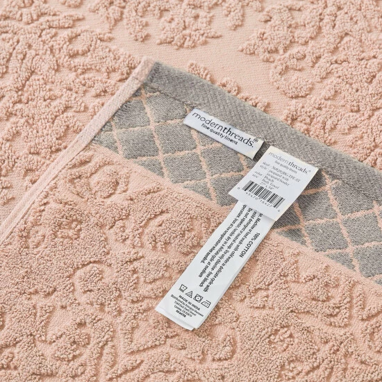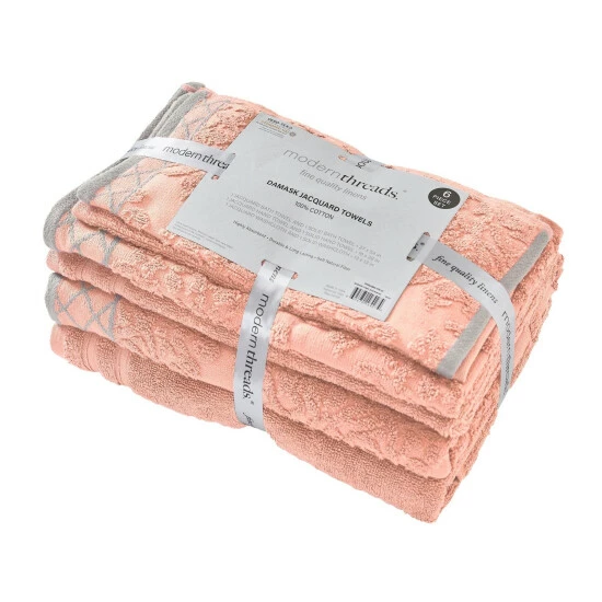 Indulge in luxurious daily self care with this six piece 100 percent cotton towel set in simple pink. This set of two hand, two bath, and two wash towels has enhanced absorbency and they are surprisingly durable. They have a solid tone finish with damask pattern accents for a sense of pure elegance in your bath set. For the perfect look, check out more color options from our Noa collection.