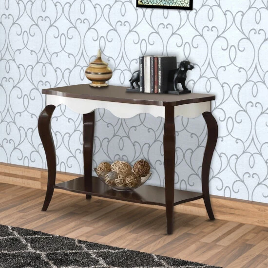 A remarkable combination of minimalism and elegance. With a traditional touch to enhance the look of the interiors of your living space, this wooden sofa table bears a brown finish and wooden cabriole legs in a walnut finish. This rectangular sofa table is designed to save space while intensifying the ambience of your humble abode. Other featured items in image are sold separately.