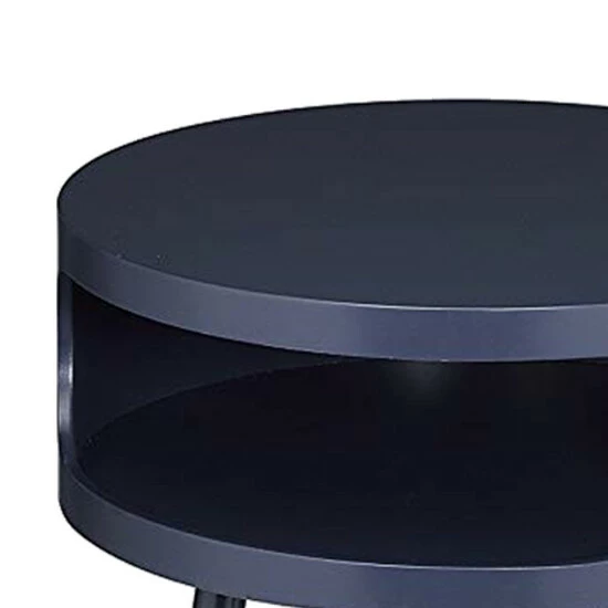 This Sonria round end table in black offers a contemporary take on a stylish retro design, ideal for your living room, family room, or bedroom! With its one shelf, you can conveniently store remote controls or other small items in the open compartment. The natural wood featured at the base of the legs provides that extra flare to bring any room together. Some assembly required.. We focus on providing top quality, and value to our customers with our vast selection of product categories which include decorative accessories, accent furniture, mirrors, wall decor, lighting and garden. We are committed to maintain high standards of quality and production.Disclaimer : We ensure that the product delivered to you is unused.There can be very minimal changes from the image provided (color may vary).