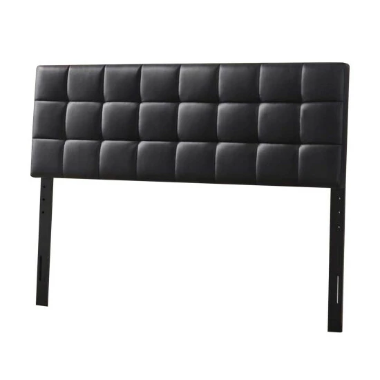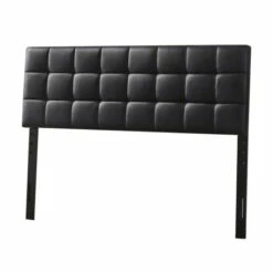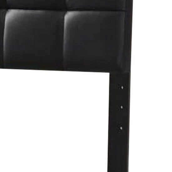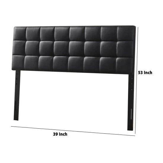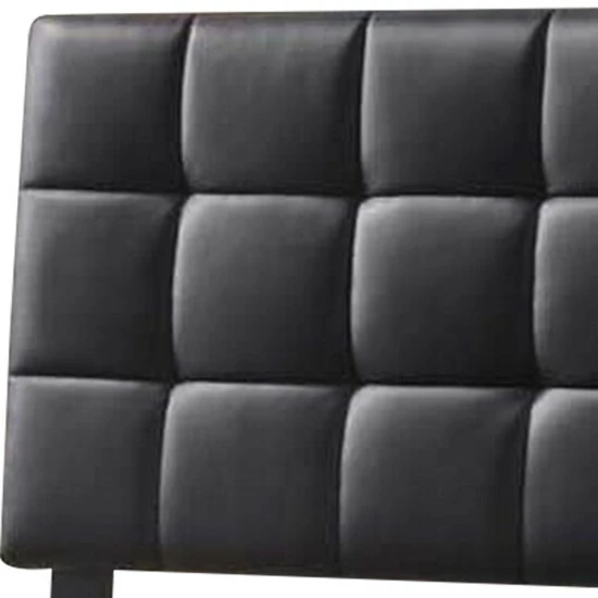 Add a touch of elegance and sophistication to your bedroom with the inclusion of this twin size headboard that exhibits transitional style. Constructed from solid wood in a rectangular shape, it is upholstered from leatherette in the hue of black and showcases square tufted details.