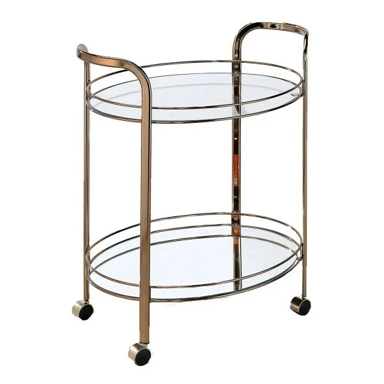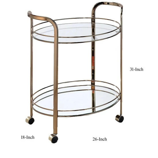 Intended to spruce up any contemporary style kitchen or dining space, this ultra-chic bronze finished serving cart is the perfect piece to show off favorite glasses or drinkware. Tempered glass shelves add a reflective touch to enhance the elegant coloring. Benzara focus on providing top quality, and value to our customers with our vast selection of product categories which include decorative accessories, accent furniture, mirrors, wall decor, lighting and garden. We are committed to maintain high standards of quality and production.Disclaimer : we ensure that the product delivered to you is unused.There can be very minimal changes from the image provided (color may vary).