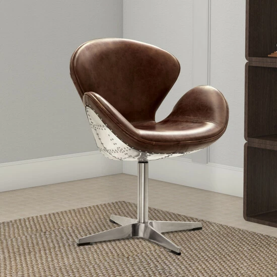 This accent chair is a splendid construction that you can include in your interior space. This accent chair can serve you in many functional way like a bar height chair or counter height chair. This accent chair is made up of top grain leather and aluminium (for the outside support). Its 4 star metal base make this accent chair more durable and sturdy.