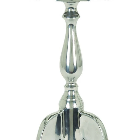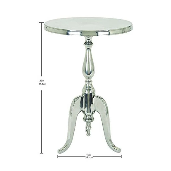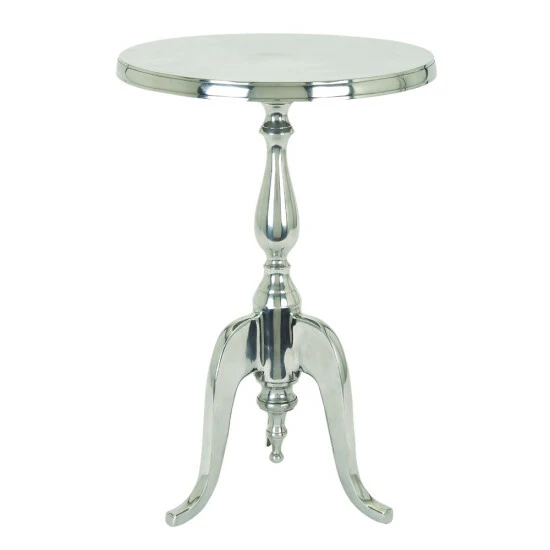 Change up your living room ensemble with this charming accent table, showcasing a pedestal base. The accent table flaunts a classical design with a circular top and traditional detailing at the base. Adorn it with vases with blooming bouquet of roses, sculptures and other decoratives for an enticing appeal in your space. This table is designed with great delicacy to offer a perfect combination of beauty and durability. Seamlessly designed from premium aluminum material, showcasing silver finish.