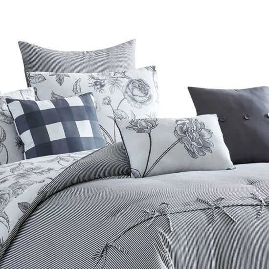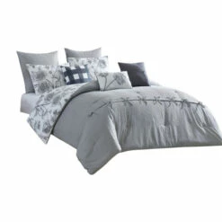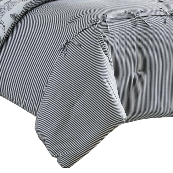 Bring this 8 piece queen comforter set to your home to give your bedroom a vibrant yet stylish makeover. The striped pattern at the front with reversible floral pattern makes it a versatile addition. The shoe lace design accent add to the creativity and look of the entire piece.