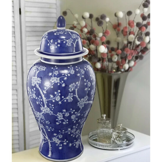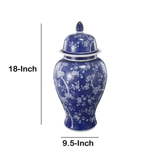 Complement your decorative interiors and kitchen decor with this blue and white ginger jar. Featuring an intriguing design of white petite flowers on solid blue, a stylish lid matching the shape. This jar makes for a decorative piece when placed by itself. Use it to store food and other decorative items or simply place it in a spacious corner for a perfect display.. We focus on providing top quality, and value to our customers with our vast selection of product categories which include decorative accessories, accent furniture, mirrors, wall dรฉcor, lighting and garden. We are committed to maintain high standards of quality and production.Disclaimer : We ensure that the product delivered to you is unused.There can be very minimal changes from the image provided (color may vary).