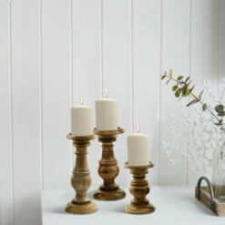 Wholesale 😀 Benzara Wooden Natural Finish Pillar Shaped Candleholder, Set Of 3, Brown 🌟