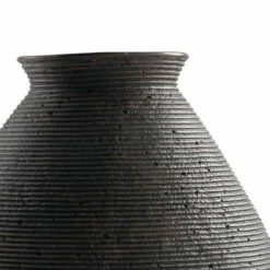 Wholesale 🌟 Benzara Dale 17 Inch Round Polyresin Vase, Tightly Ribbed Texture, Antique Brown 👏